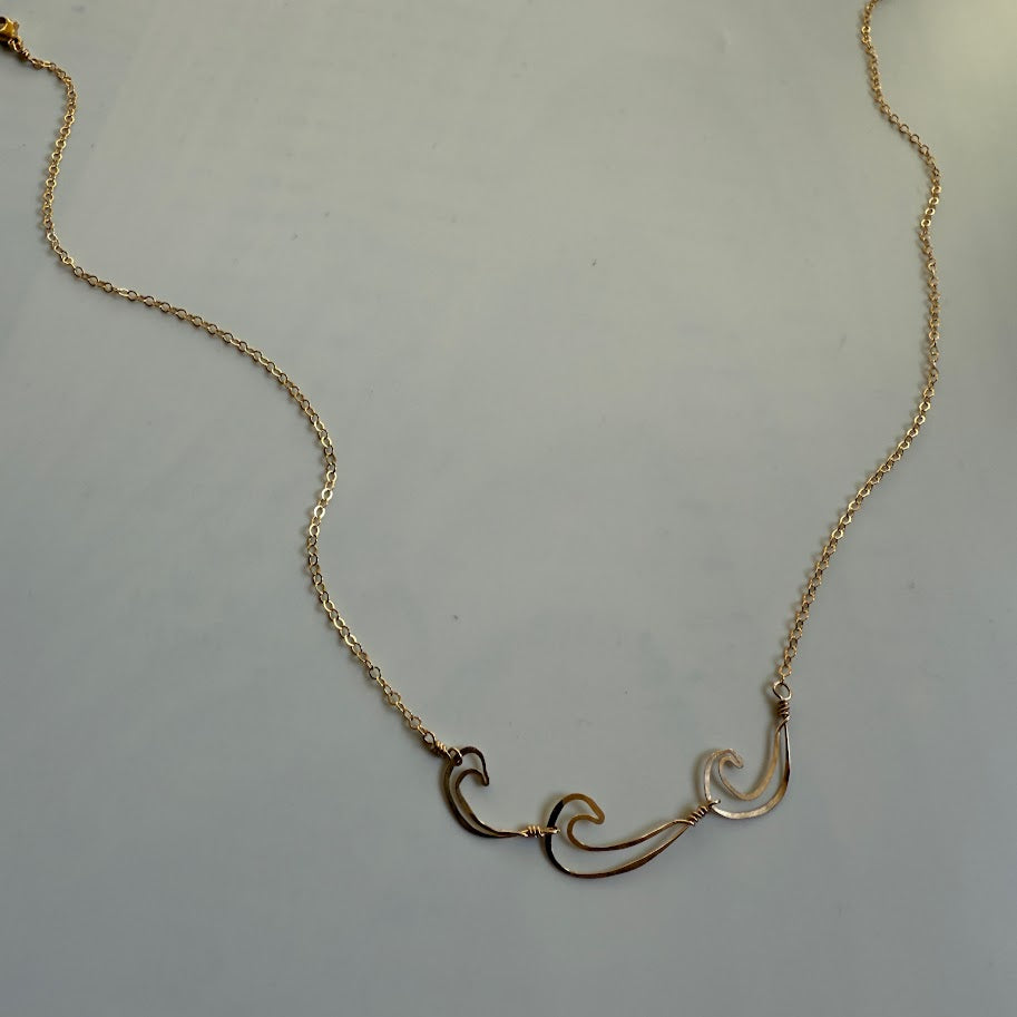 Bring out your inner mermaid;) Flaunt your love with a playful and distinctive twist with the 3 Waves Necklace! The fantastical waves forever entwined on this handmade necklace are one of a kind. Every wave form is hand-crafted and will vary.