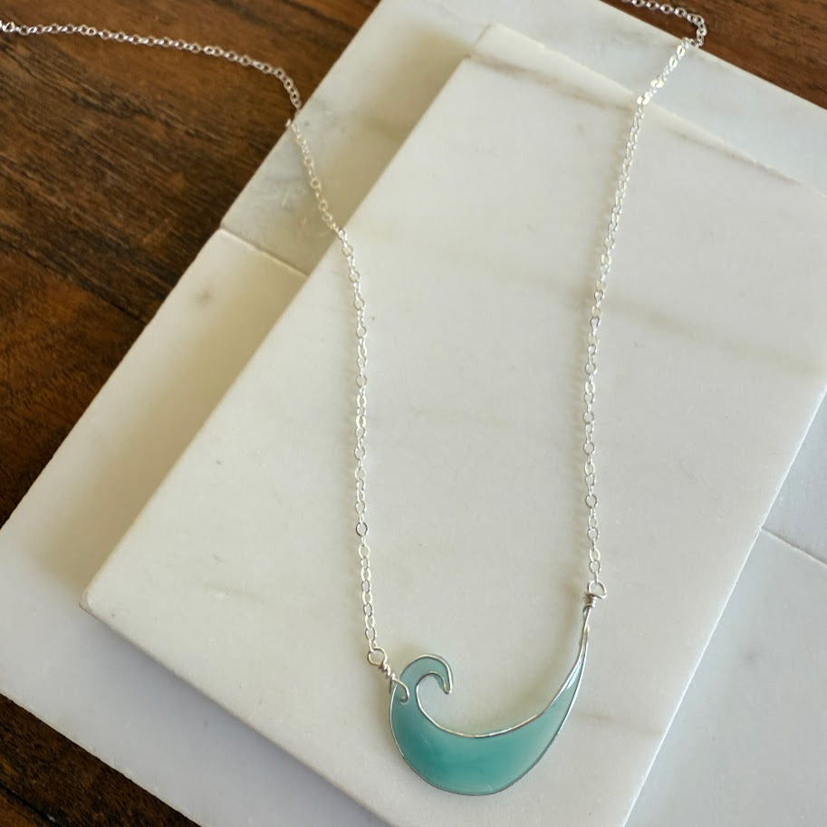 Looking for a playful way to show off your mermaid obsession? Then check out this Wave Necklace! Each handcrafted wave is uniquely shaped and colored, making for a truly one-of-a-kind piece. It's like having your very own miniature wire sculpture and painting in one!
